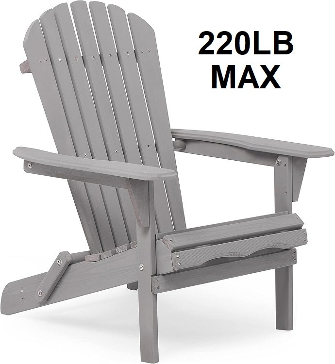 Outdoor Wooden Folding Adirondack Chair - 220lb max - grey