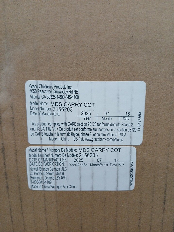 GRACO MODES CARRY COT - 29" x 16" x 12" - BLACK/GREY (MODEL: 2156203)