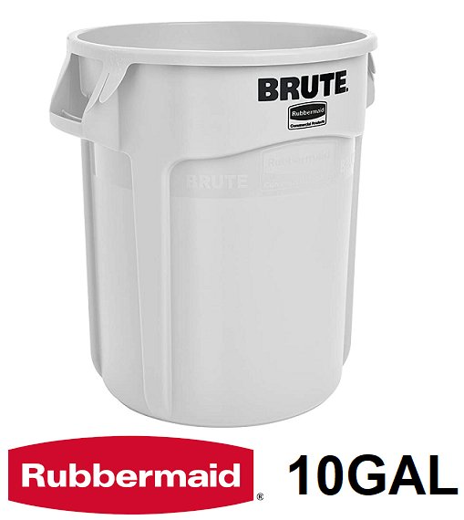 RUBBERMAID BRUTE COMMERCIAL 10 GALLON TRASH CAN - WHITE - (MODEL: FG261000WHT)