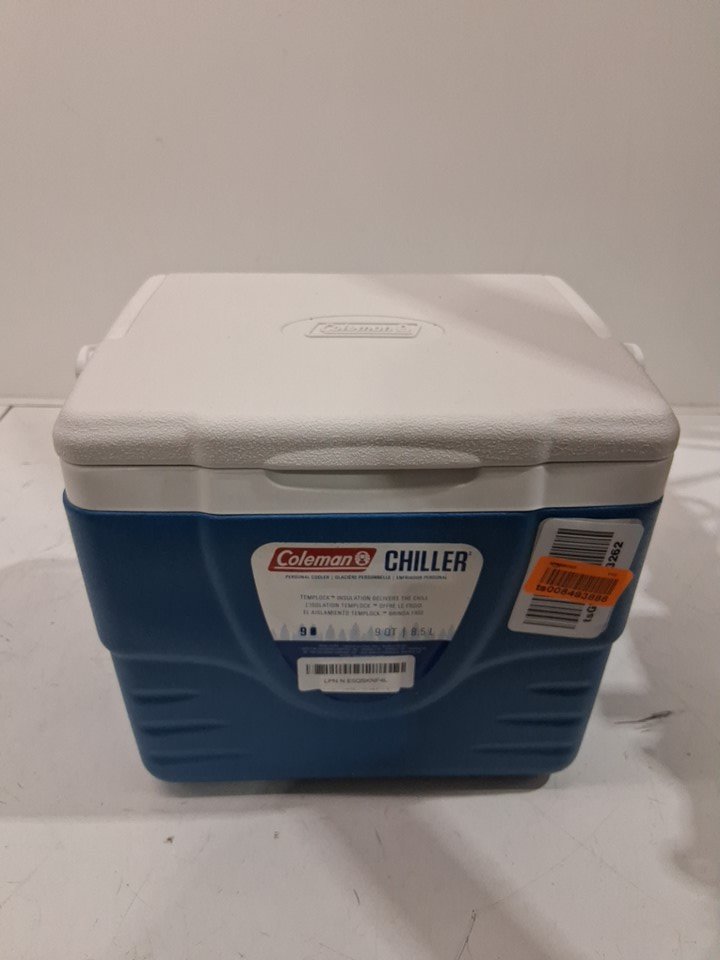 COLEMAN CHILLER PORTABLE INSULATED HARD COOLER - HOLDS UP TO 4 CANS WITH 4LBS OF ICE - 9QT - BLUE - (MODEL: 6209)