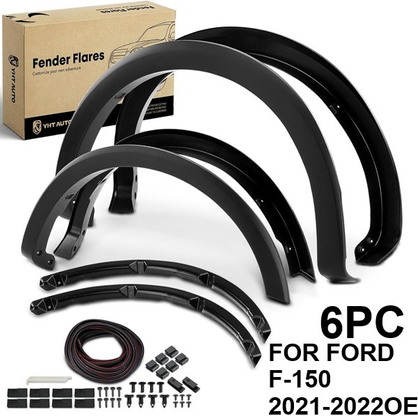 6PC YHTAUTO OE Factory Style Fender Flares Replacement and Hardware Kit - FOR Ford F-150 2021-2022 OE - Black (MODEL- FFF00E004T-YC FL2)