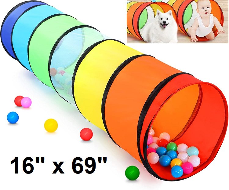 Kids Pop- Up crawl Play Tunnel Tent - 18" x 69" - multicolor