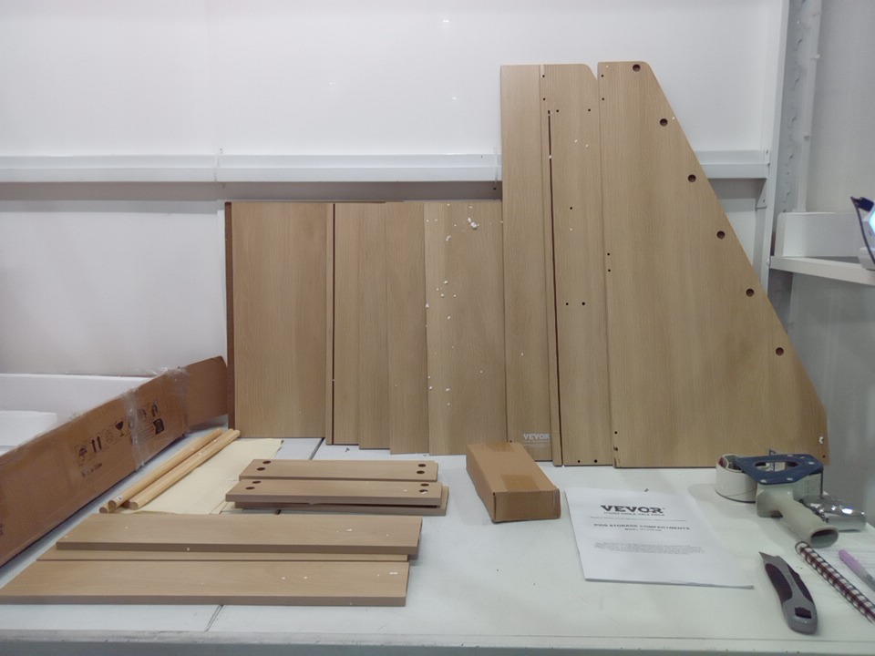 please note that most of the slats have chips and scuffs on them from being previously assembled. also missing hardware. see photos please.