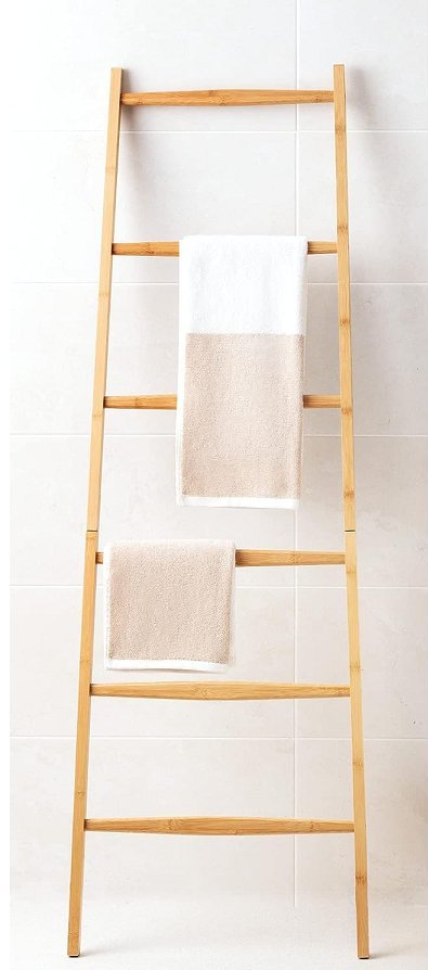 NAVARIS BAMBOO TOWEL LADDER FOR BATHROOMS AND BEDROOMS HOLDS TOWELS AND CLOTHING GREAT FOR DRYING LAUNDRY -66'' x 22'' - light BROWN WOOD (MODEL:‎51606.24)