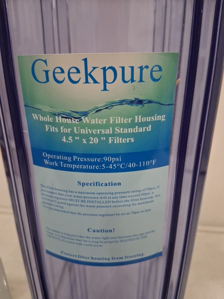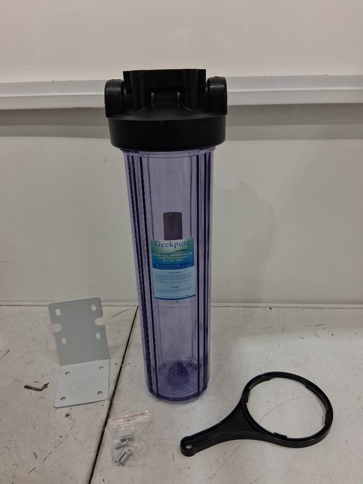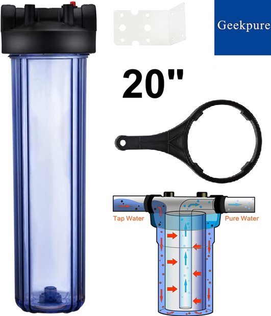 Geekpure whole house Water Filter Housing 3/4" Outlet/Inlet with Wrench and Bracket, fits 4.5" x 20" filters - 4.5" x 20" - clear Blue (‎BB-20T 3/4")