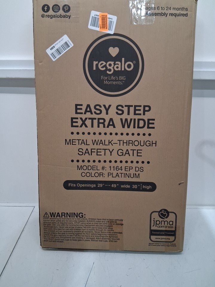 REGALO EASY STEP EXTRA WIDE METAL SAFETY GATE - 30" x 29" to 49" - platinum GREY (MODEL: 1164EPDS)