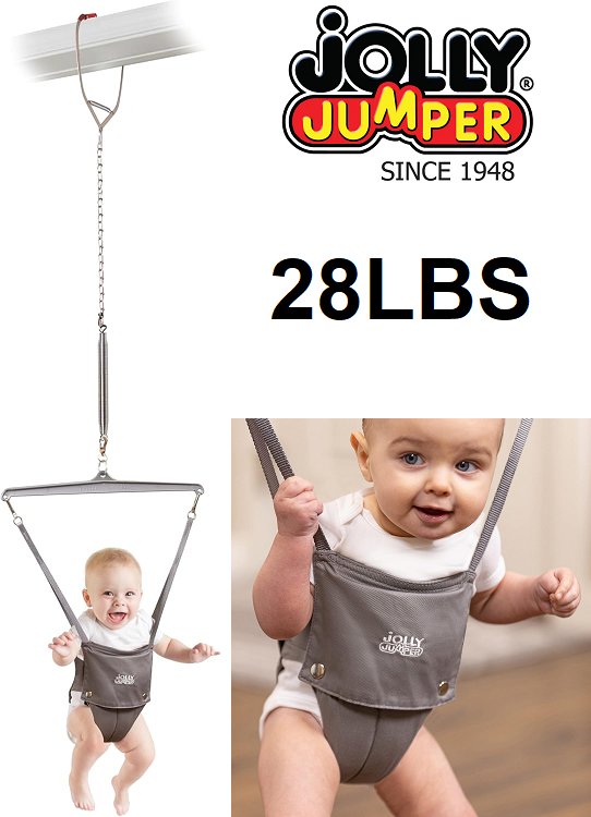 jolly jumper iconic baby jumper for doorway with saddle seat & adjustable height - 28lbs capacity - grey (model: ‎ZA-CDS-2866)