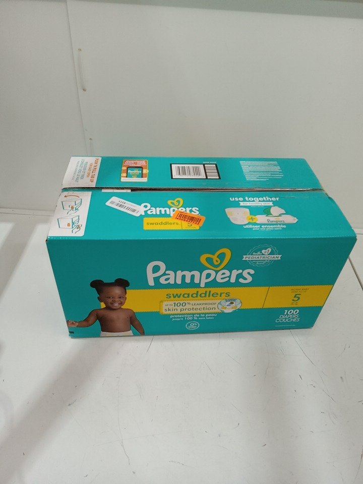 100PK PAMPERS SWADDLERS up to 100% LEAKPROOF BABY DIAPERS - SIZE 5