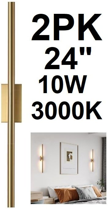 2PK reddragon lighting Hardwired Modern Slim Long Tube Wall Sconce - 24" - Gold (model: ‎Dim-RD-TWL-WW-Gold-24inch)