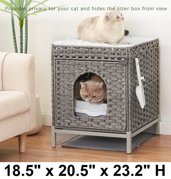 SETVSON ENCLOSED CAT LITTER BOX FURNITURE, RATTAN STYLE - 18.5" X 20.5" X 23.23" - GREY (MODEL: XHLBE-03-NL)