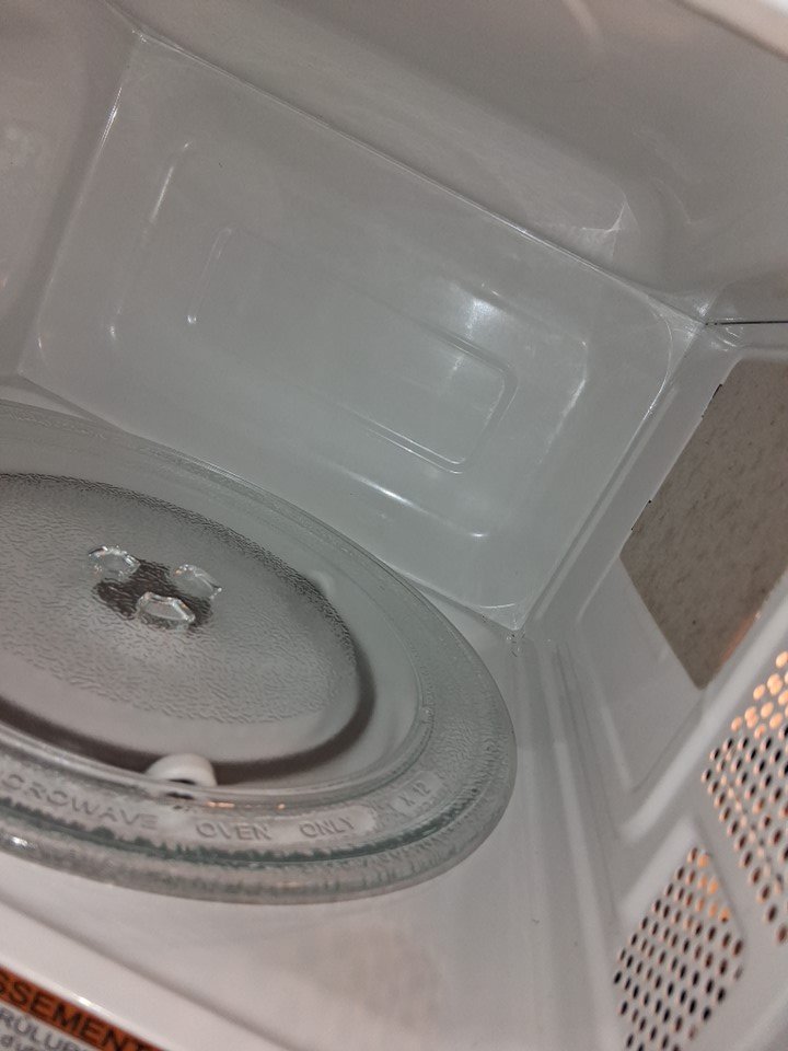 some food residue inside microwave and item was tested for power only, see photos,