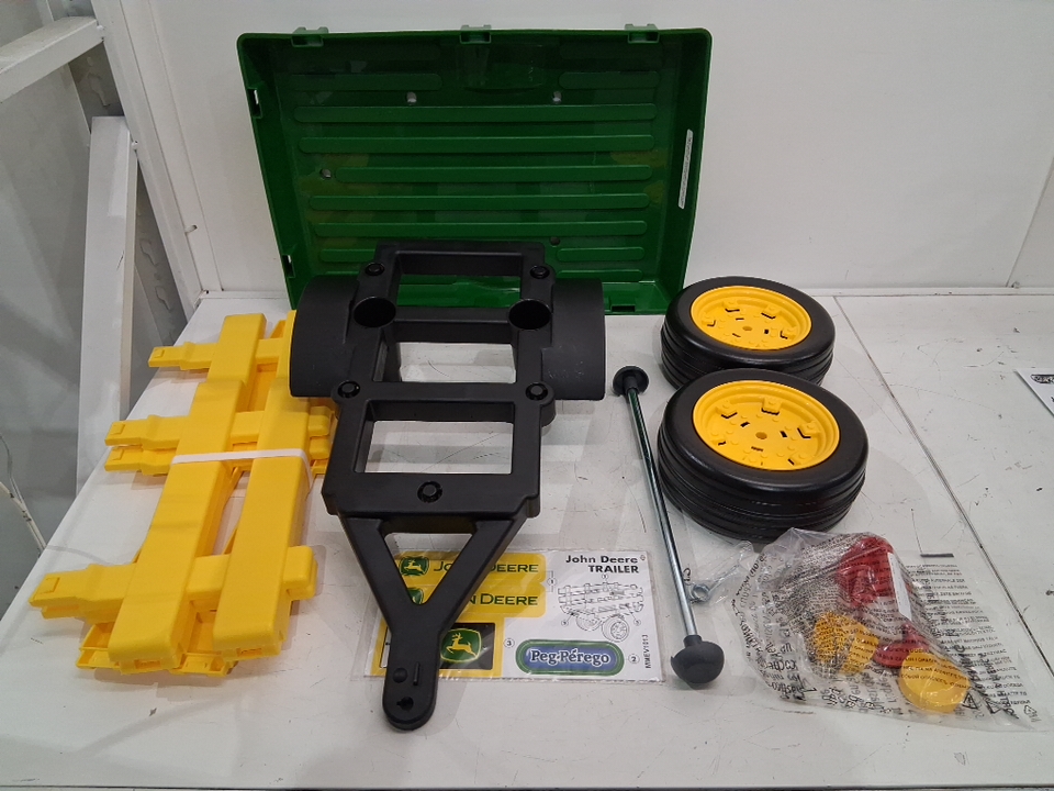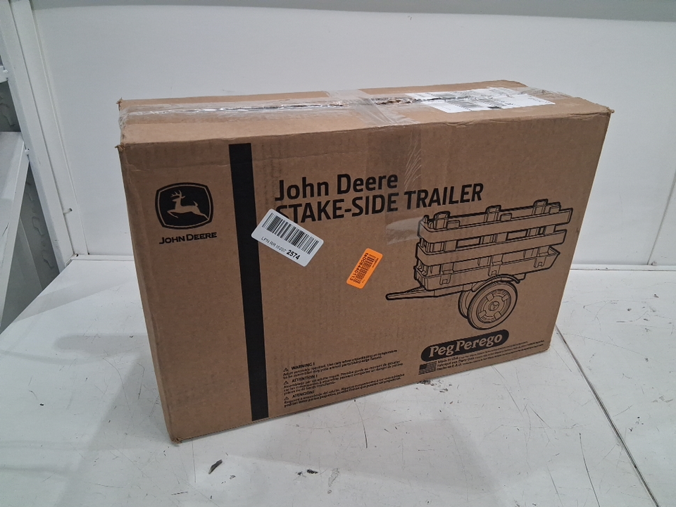 JOHN DEERE SIDE STAKE TRAILER WITH REMOVABLE STAKE SIDES GREEN AND YELLOW (MODEL: IGTR0934)