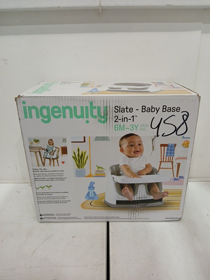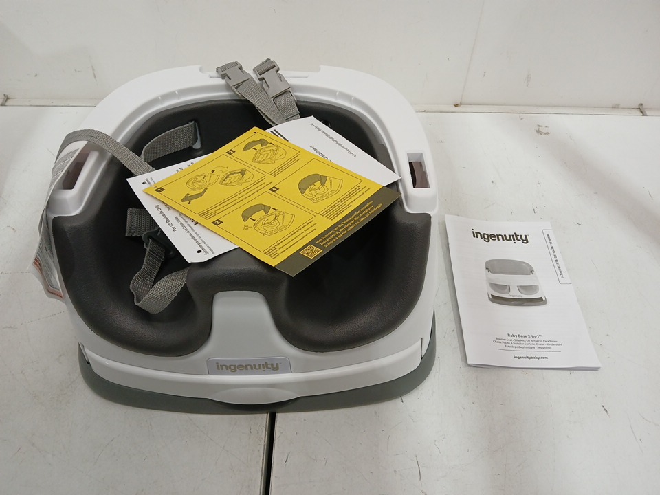INGENUITY BABY BASE 2-IN-1 BOOSTER SEAT WITH FOOD & DRINK TRAY - 50LBS CAPACITY - WHITE/SLATE GREY (MODEL: 11576)