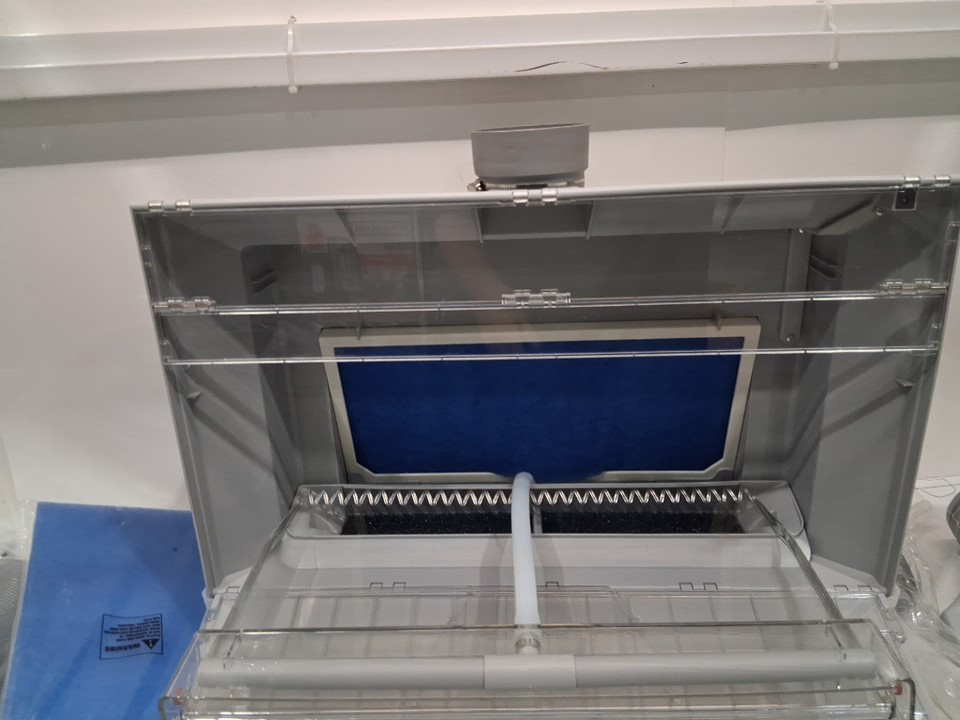 Bulelula Airbrush Spray Booth, Portable Paint Spray Booth with 3 Fans & 3 LED Light Turn Table - 19" x 23" x 19" - grey - (model:hs-e600)