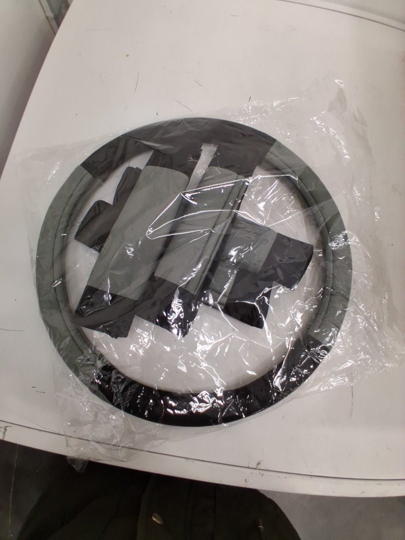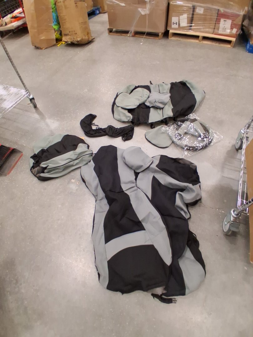 11PC CAR SEAT COVERS, FRONT REAR WITH HEADREST AND STEERING WHEEL AND SEATBELT COVERS - GREY & BLACK