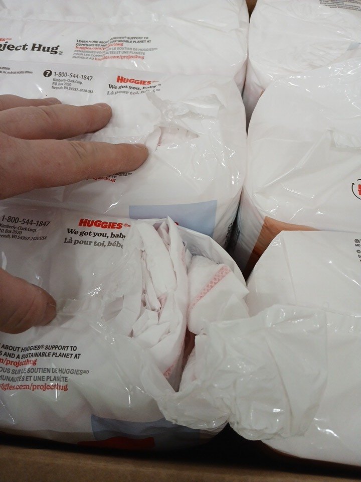 two of the packs are cut open and may or may not be missing some diapers.