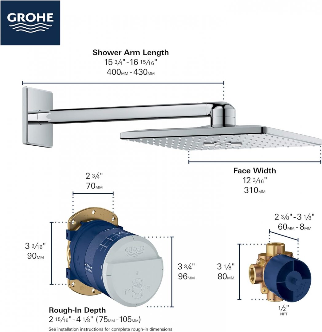 GROHE RAIN 310 SMART ACTIVE 2-SPRAY PURE RAIN 12" SHOWERHEAD, STARLIGHT CHROME (MODEL: 26504000)