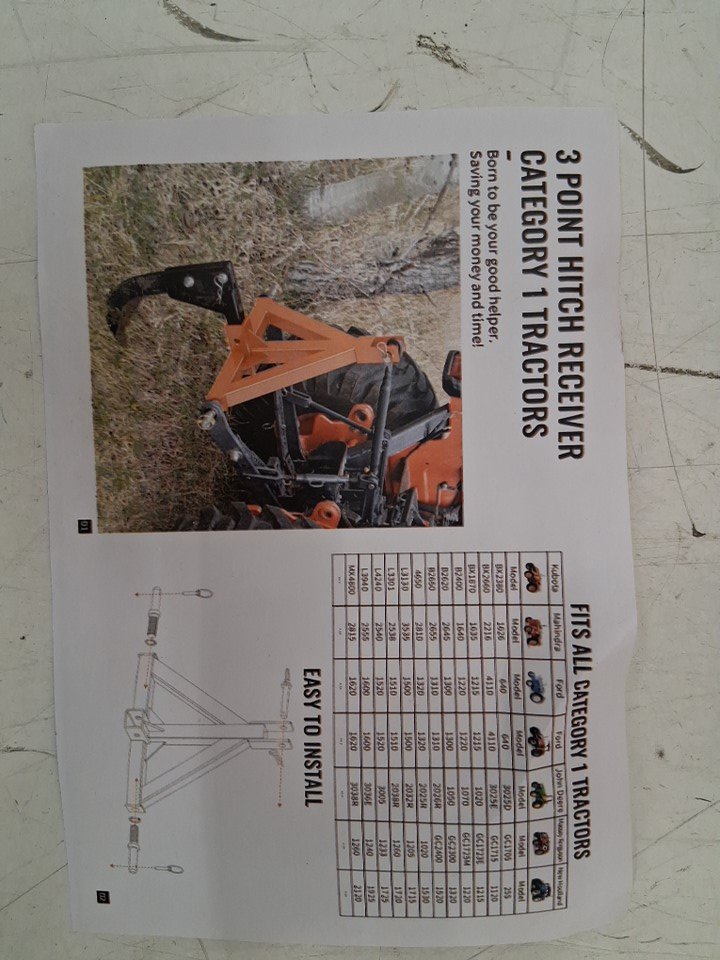 3-Point Trailer Hitch with 2" receiver for Tractors - 32.5" x 6.49" x 17.5" - Orange