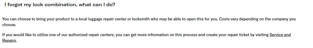 one of the locks doesn't open. https://www.samsonite.ca/en/faqs.html here is the link to the policy, it can be fixed by visiting here.