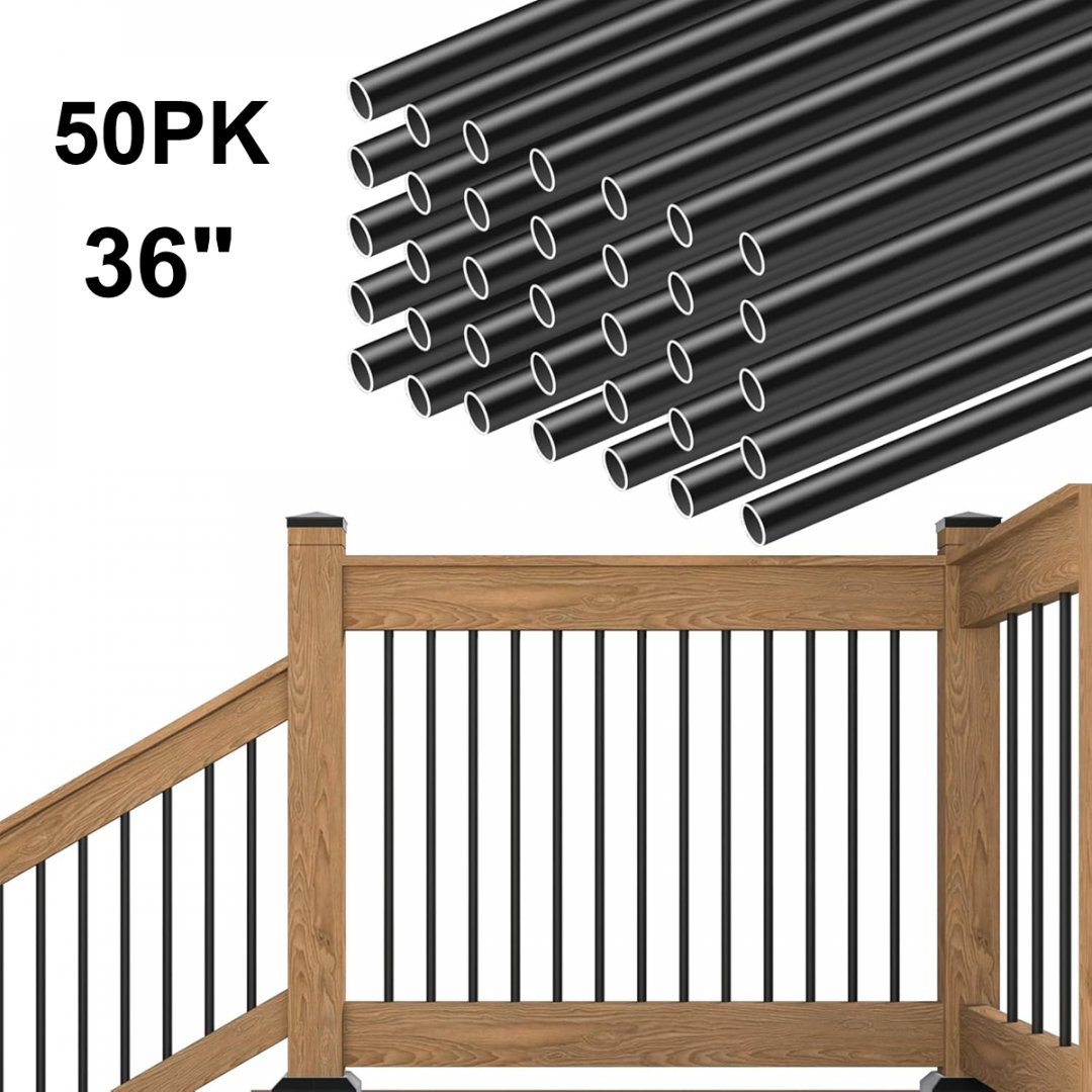 50pk Muzata Aluminum Deck Balusters, round Railing Stair Porch Staircase Spindles, 0.75" Diameter, 36" LENGTH - BLACK (MODEL:WT01)