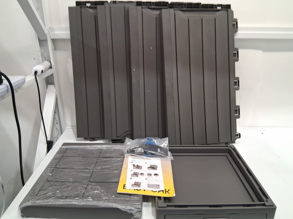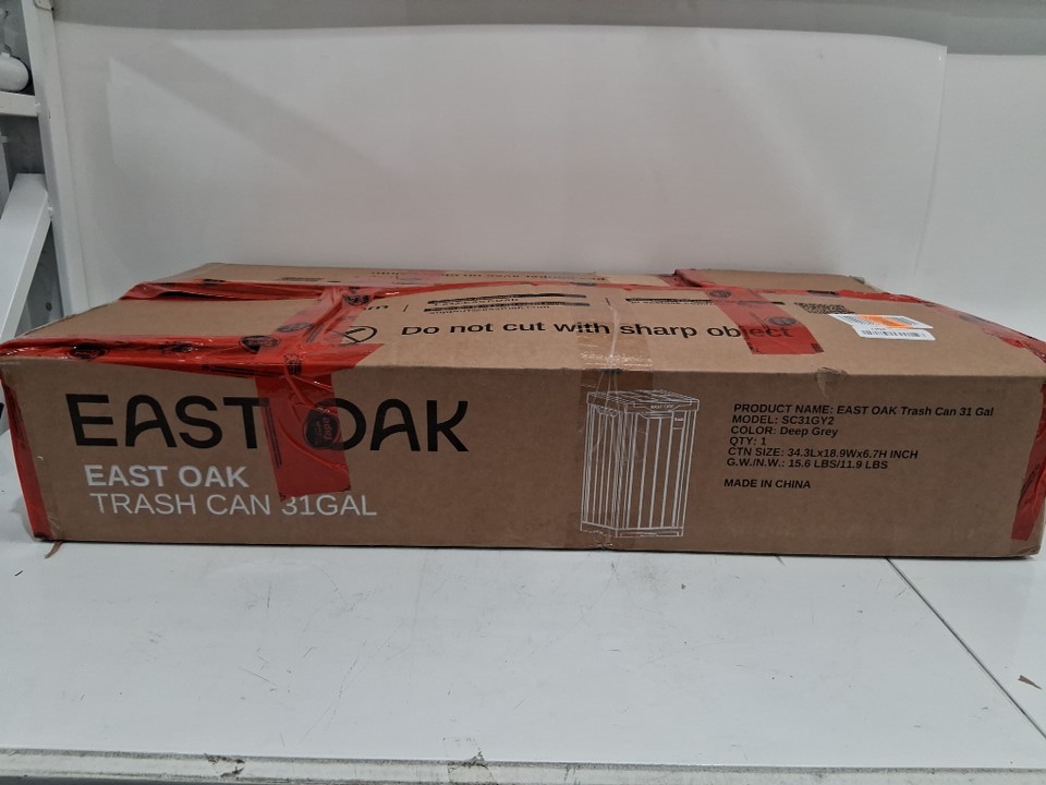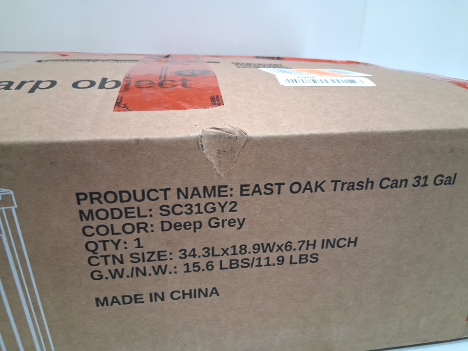 east oak outdoor trash can with drainage tray - 31gal - 16.5" x 17" x 31" - dark grey (model: sc31gy2)