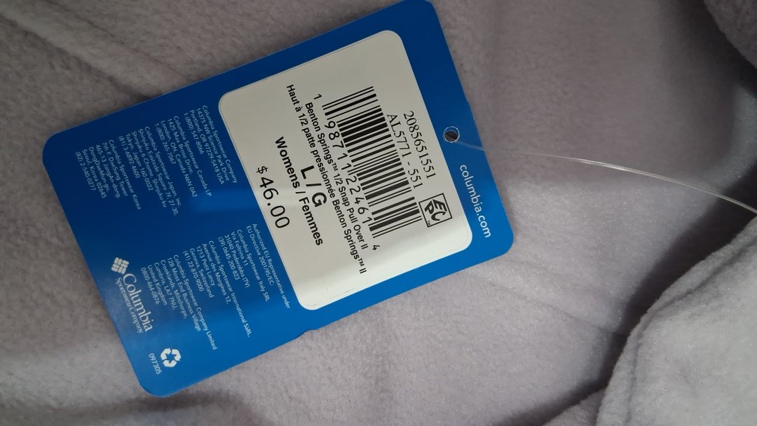 WOMENS COLUMBIA BENTON SPRING PARTIAL ZIP FLEECE - LARGE - PURPLE