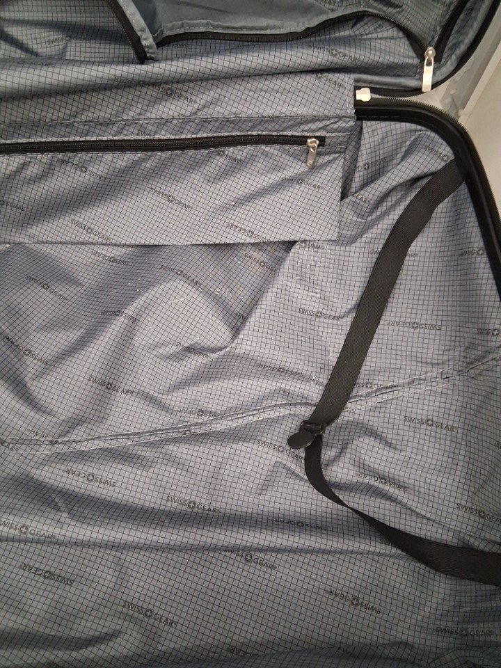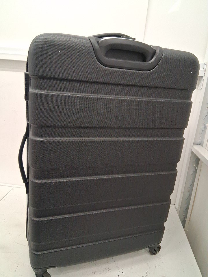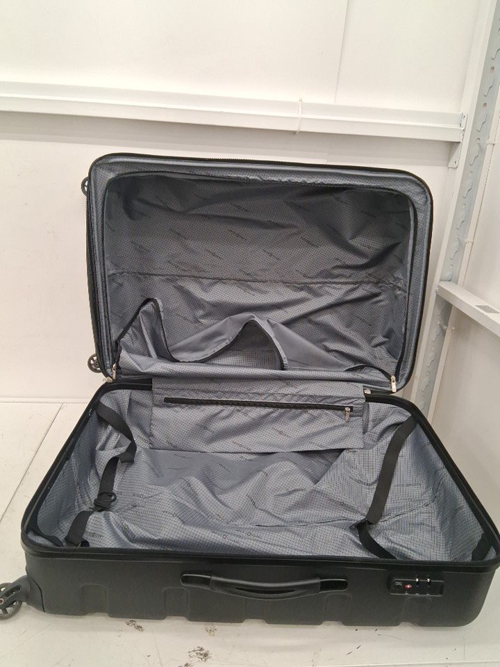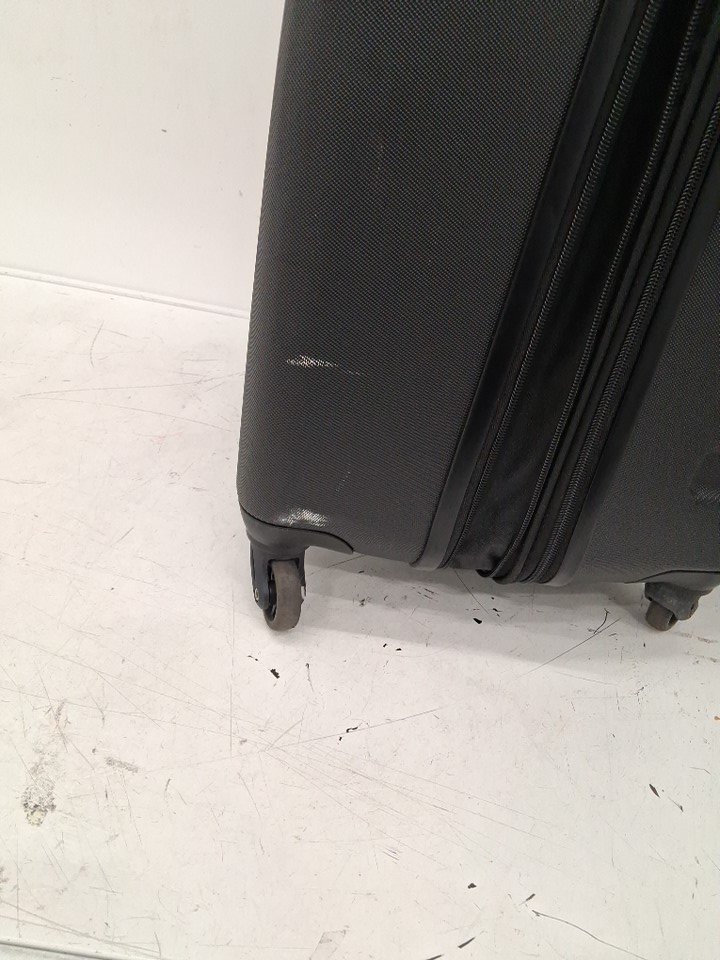 Item has white marks & light scuffs/scratches due to previous use. The zip puller for the expandable zip is missing, and the zip is undone (see photos for reference)
