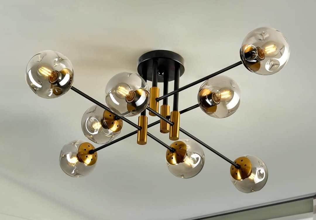 SZXYKEJI 8-light Glass Globe Flush Mount Ceiling Light - 37.7" x 11.2" - black/gold
