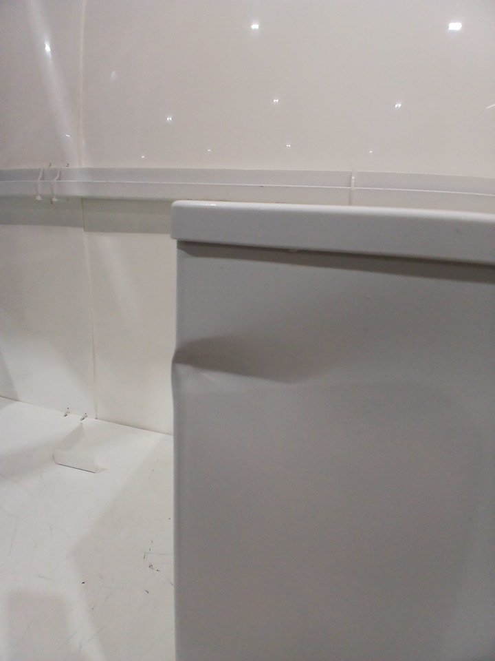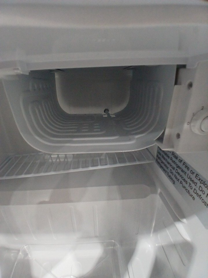 Tested for power only. Has 2 dents at the top of the door and the plug is a bit bent but still functional.