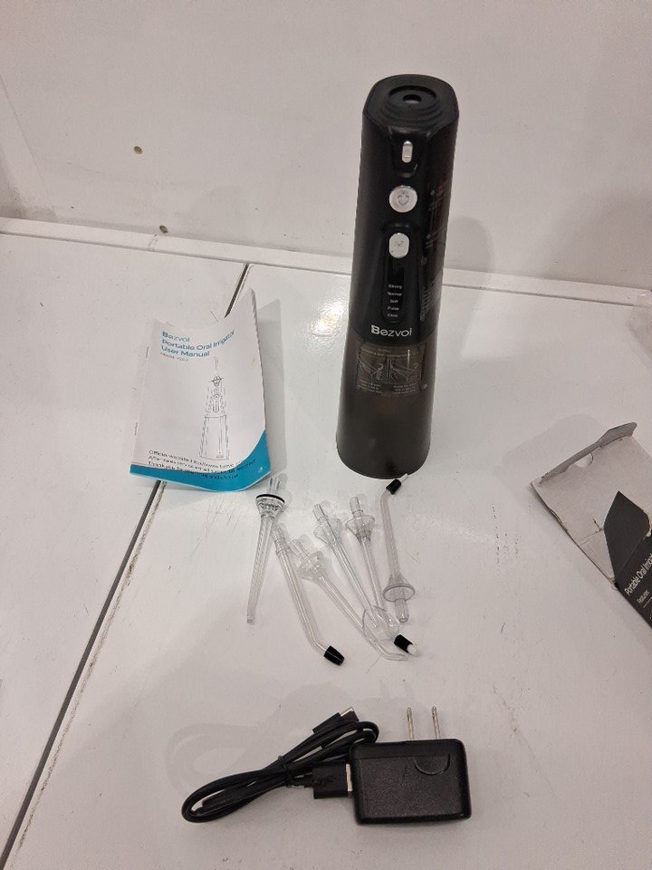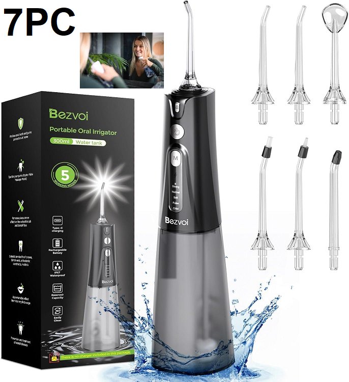 7PC BEZVOI PORTABLE ORAL IRRIGATOR, RECHARGEABLE WITH 6 JET TIPS - BLACK (MODEL: Y207)