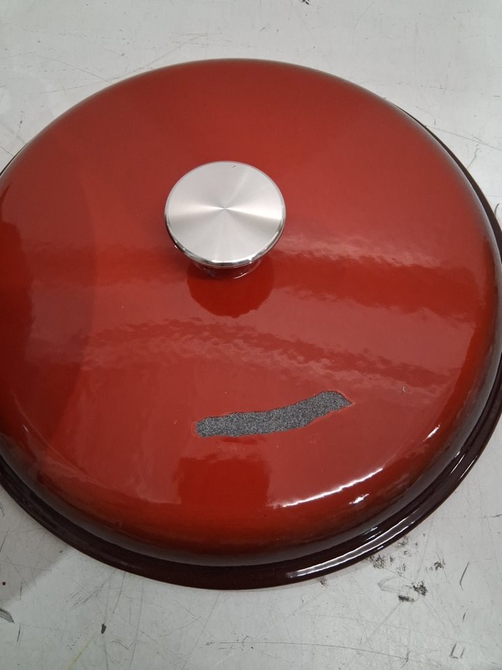Please note some of the enamel has peeled off on the top of the lid and the side of the pot inside, see photos.