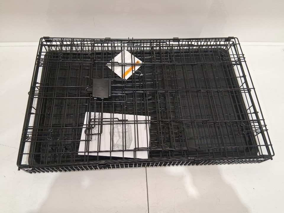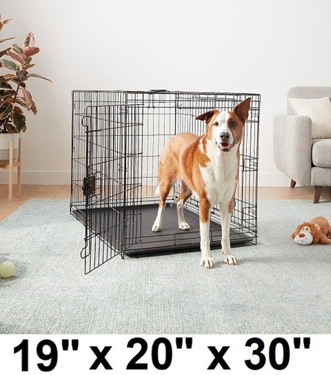 AMAZONBASICS FOLDABLE METAL WIRE DOUBLE DOOR DOG CRATE WITH TRAY - 19" X 20" X 30" - black