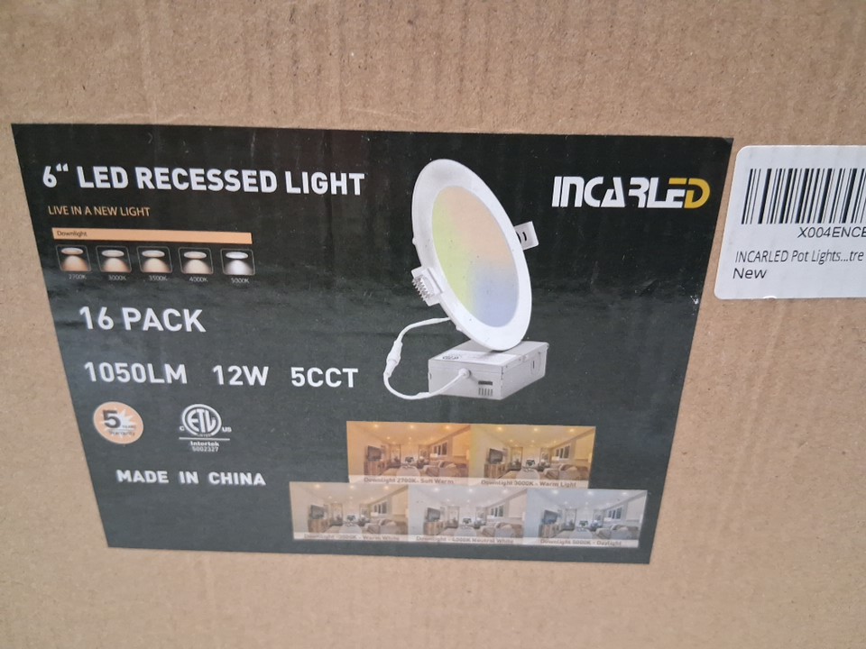 16PK INCARLED LED RECESSED SLIM CEILING POT LIGHTS - 4" - 9W - 750LM - 3000-5000K 3CCT - WHITE