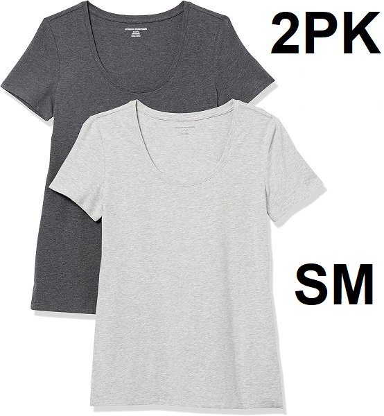 2PK WOMEN'S Amazon Essentials Classic Fit Short Sleeve Scoopneck T-Shirt - small- light grey/dark grey(STYLE: P_AE80740_S2)