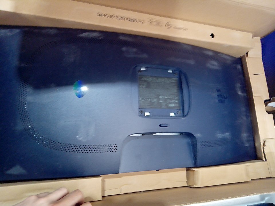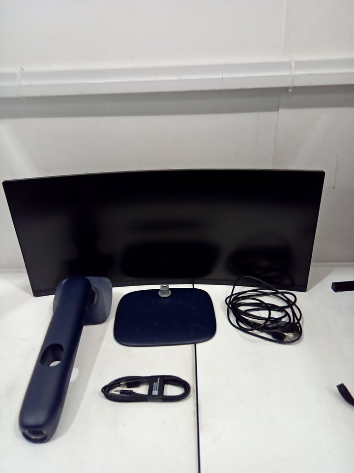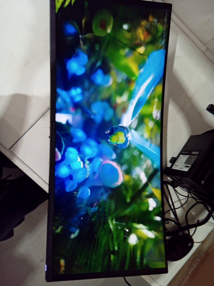 There are dust marks and light scratches on the back and sides of the monitor. The button in the middle on the bottom is loose, making it impossible to navigate the menu. The screen is currently set to a setting that has a dot in the center of the screen and it could not be changed using the bottom button. Tested for power and display up to 180hz through DisplayPort connection. (SEE PHOTOS)
