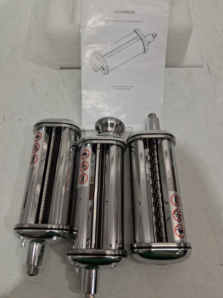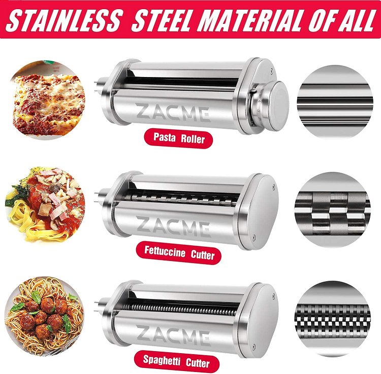 3PC ZACME PASTA MAKER ATTACHMENTS FOR KITCHENAID/CUISINART MIXER, STAINLESS STEEL (MODEL:‎CFCJ-B029)