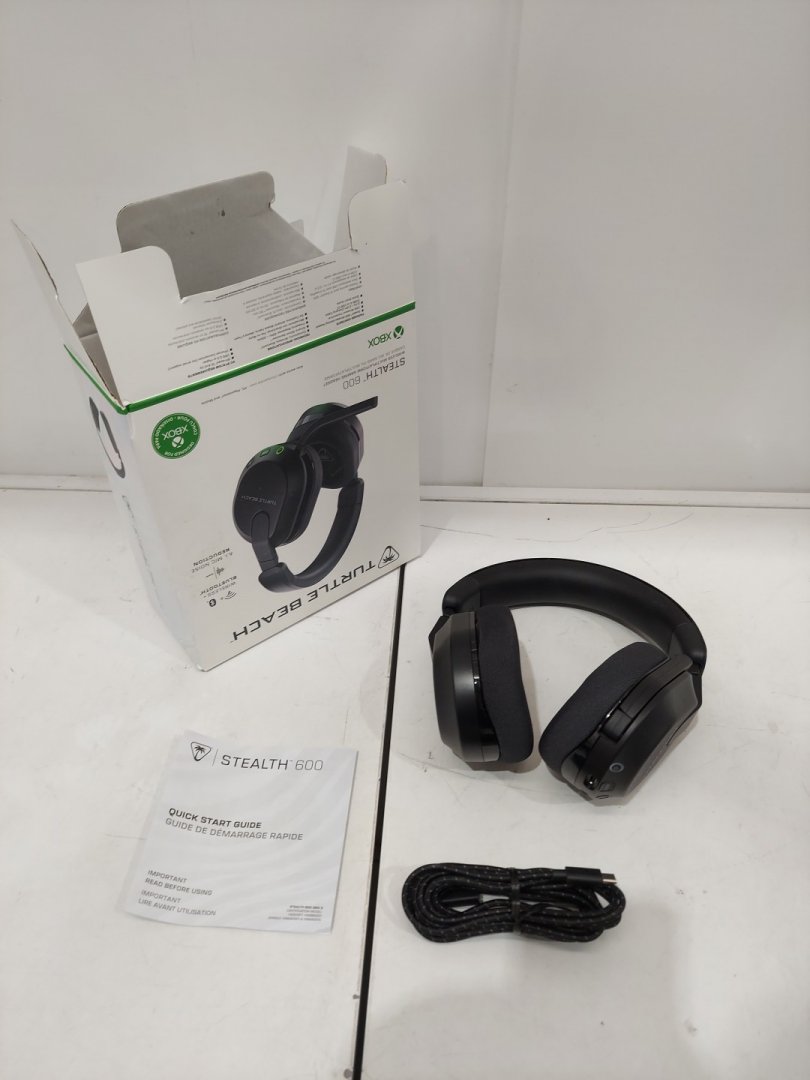 Item arrived with signs of light use on the ear cushions but nothing that should effect use. additionally this item arrived without the usb connection dongle but this can be replaced and the item can still be used with bluetooth. tested for power and function with bluetooth.