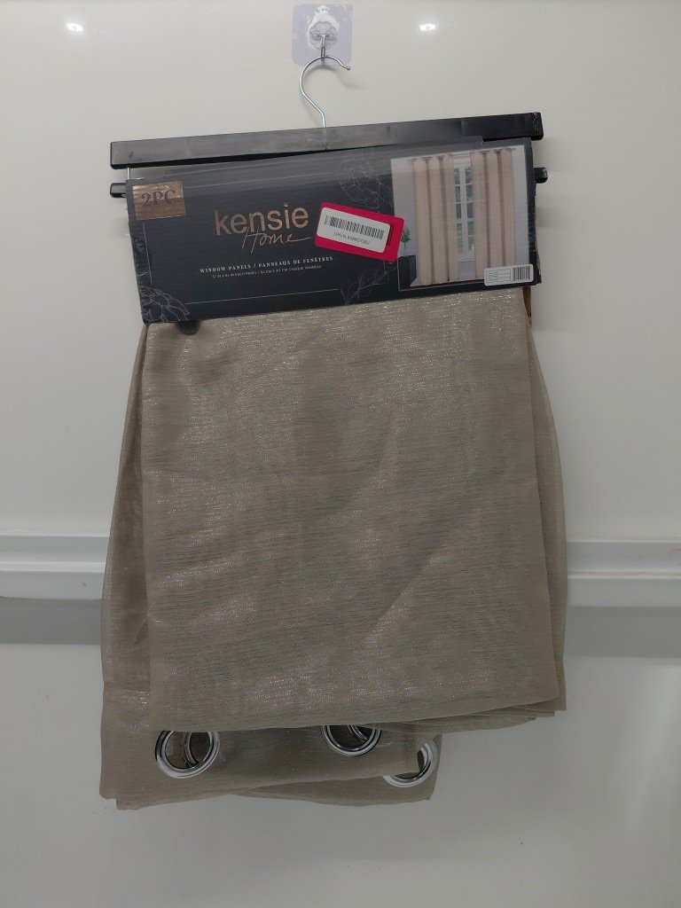 (2 panel) Kensie Justus Metallic GROMMET TOP Window Curtain - 37" x 84" - silver/green