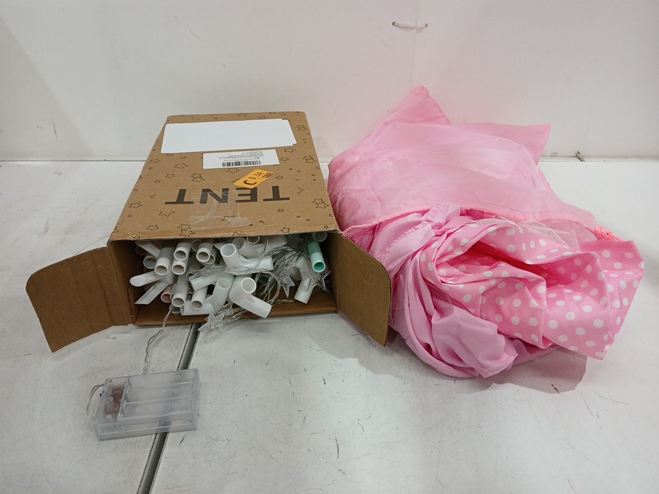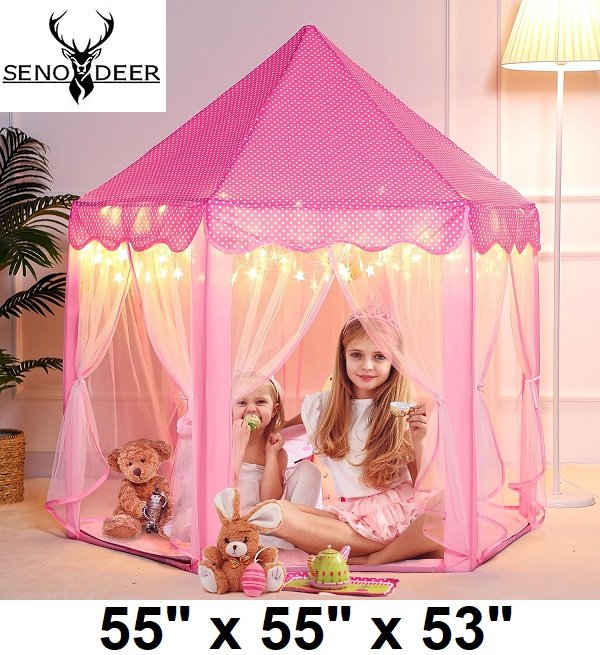 senodeer princess castle play tent with star lights and carry bag - 55" x 55" x 53" - pink/white (model: kp-gt-011001)