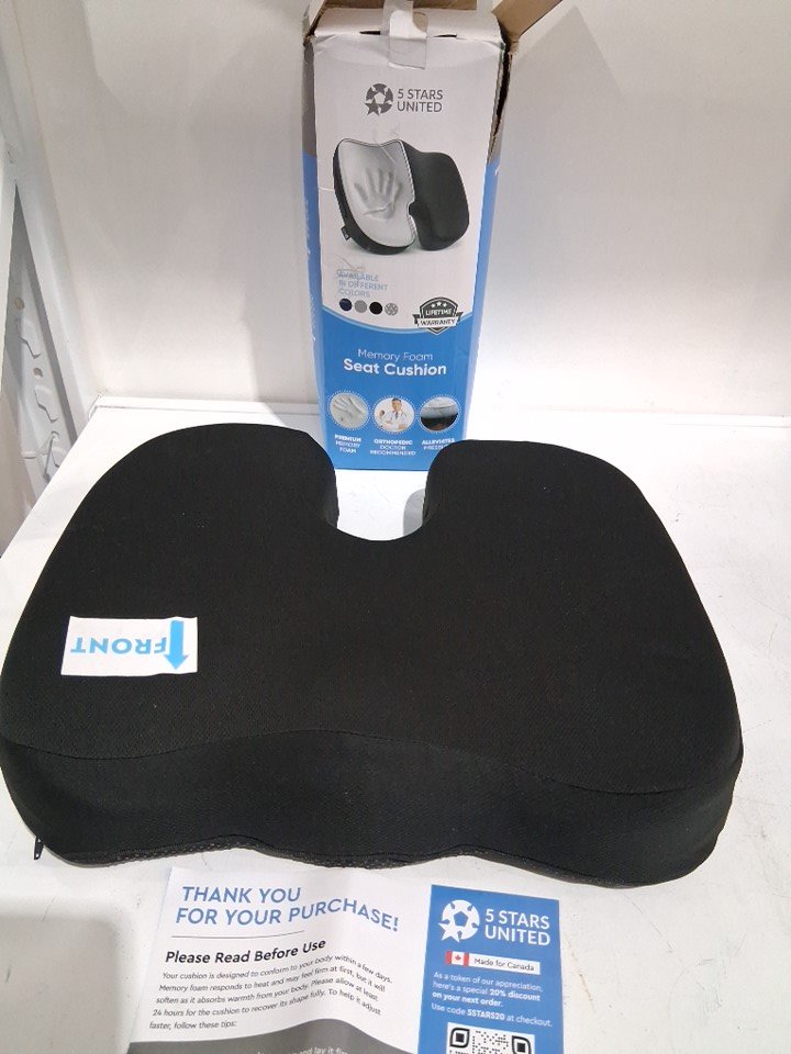 5 stars united memory foam seat cushion with cool gel layer - 14" x 18" - black