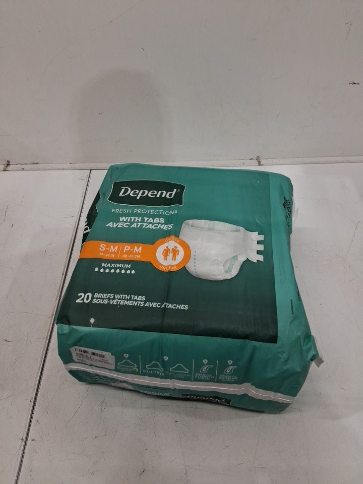 20PK adults unisex DEPENDS fresh PROTECTION With TABS - MAXIMUM BRIEFS - SMALL/medium - WHITE
