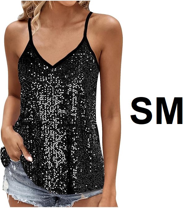 women's sequin glitter v-neck spaghetti strap tank top - small - black