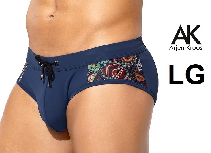 men's arjen kroos quick-dry drawstring swim briefs - large - navy blue