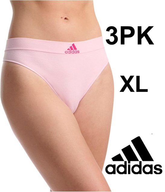 3PK WOMENS ADIDAS SEAMLESS THONG UNDERWEAR - EXTRA LARGE - GREY/BROWN/PINK (STYLE: 15741)
