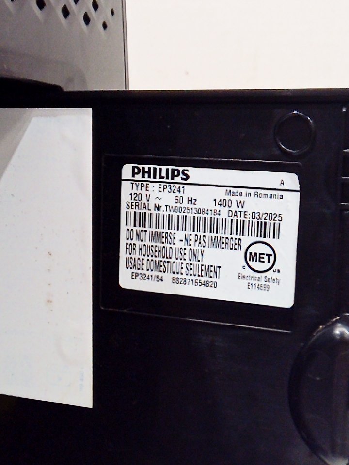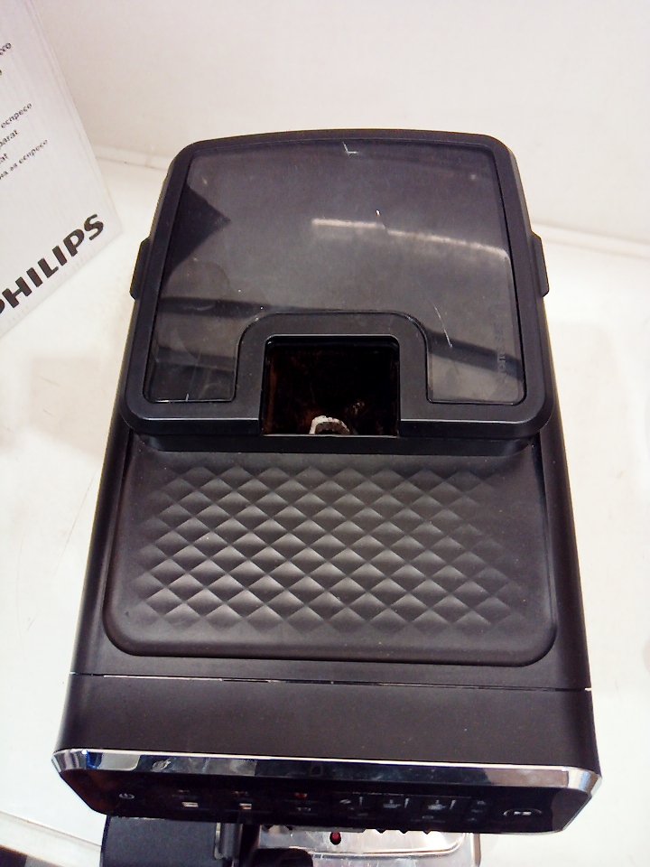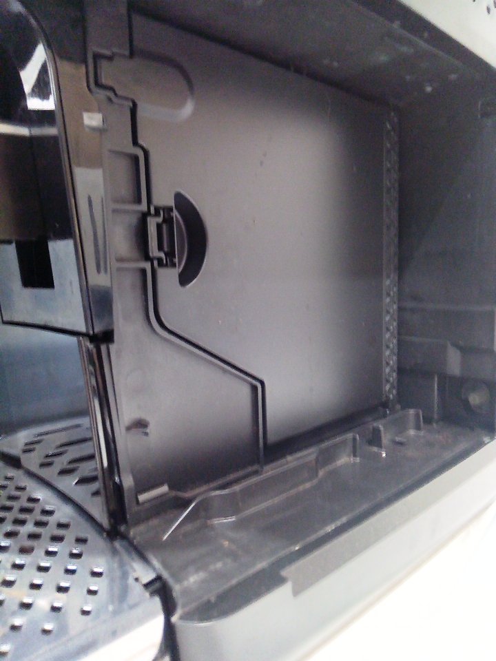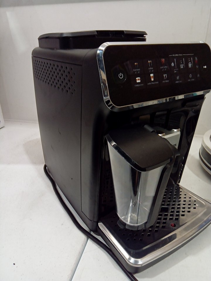 There is coffee residue, dust and light scratches on the machine. Ours is missing the small plastic flap piece for the top. Ours does not include any cleaning or descaling accessories. Tested for power. (SEE PHOTOS)