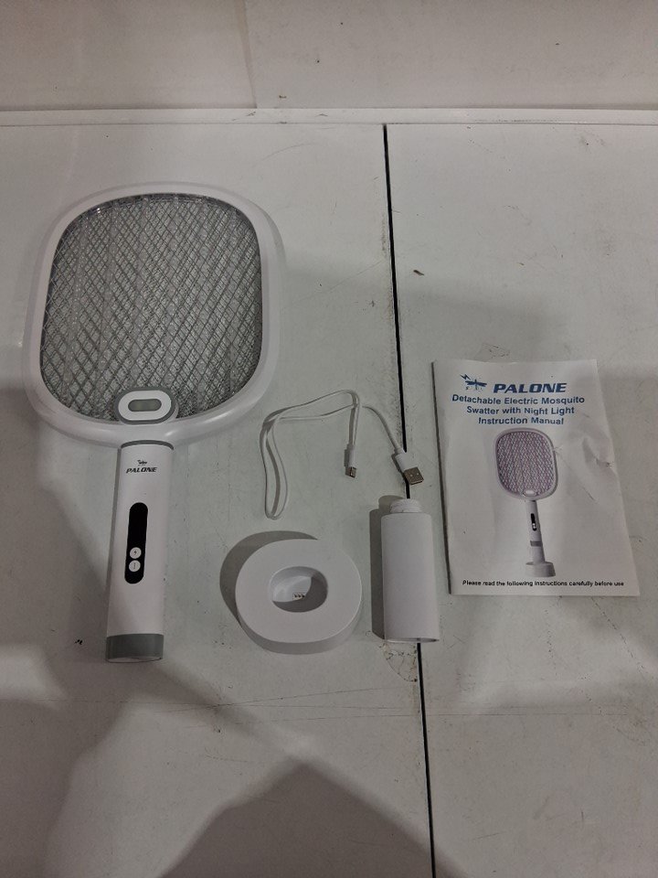 PALONE USB Rechargeable Electric BUG ZAPPER Racket with Attractant Light - 4000V - WHITE (MODEL: XH-40B)