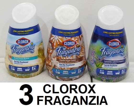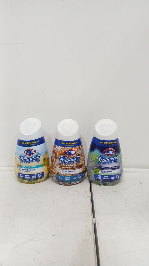 3 CLOROX FRAGANZIA GEL AIR FRESHNERS - VANILLA SUGAR COOKIE/ LAVENDER WITH EUCALYPTUS/ FRESH OCEAN BREEZE