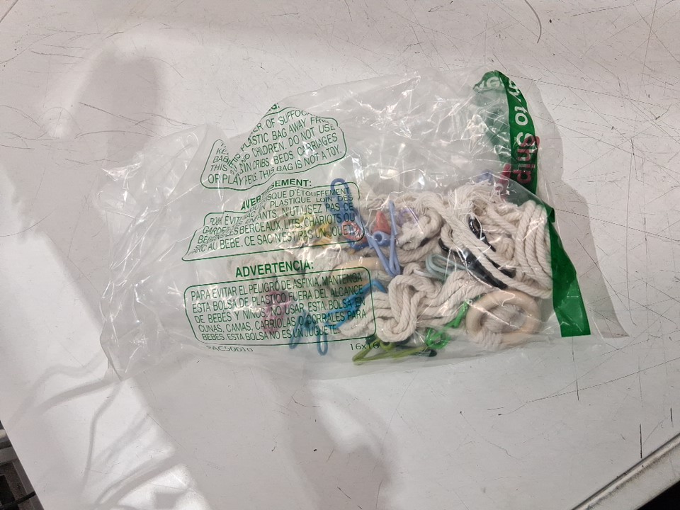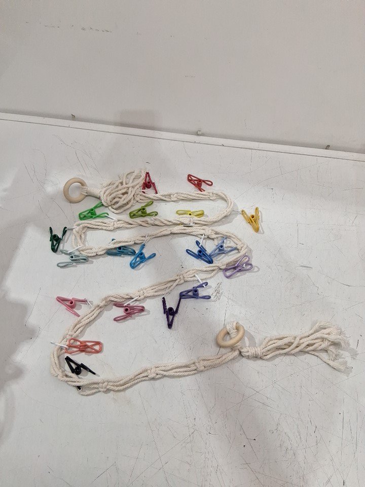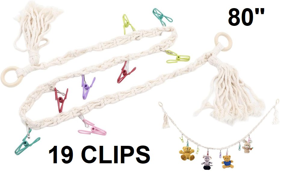 cotton rope stuffed animal storage chain with 19 clips - 80" - white/rainbow