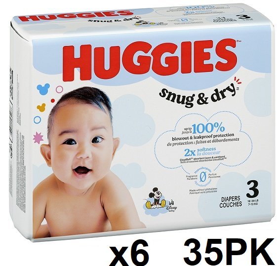 6 (35PK) Huggies Snug & Dry disposable Diapers - Size 3 (16-28LBS) - disney