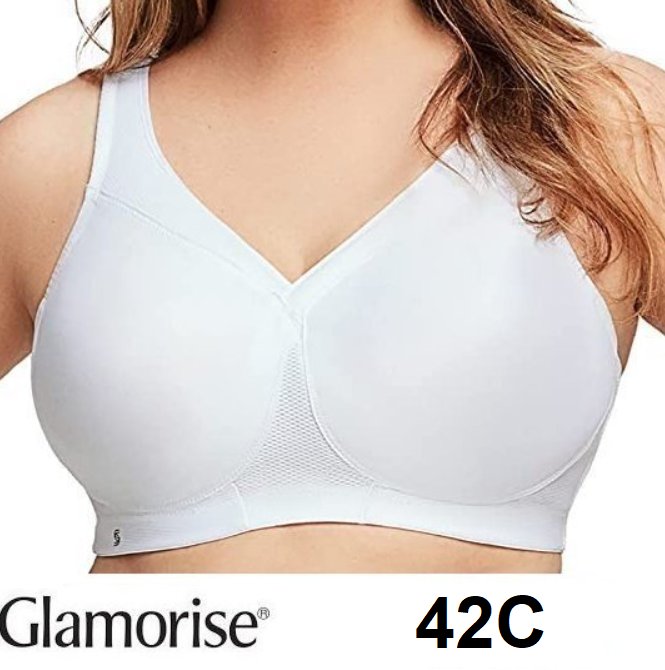 WOMEN'S GLAMORISE SPORT FULL FIGURE MAGICLIFT SEAMLESS WIREFREE SPORTS BRA - 42C - WHITE (STYLE:1006)